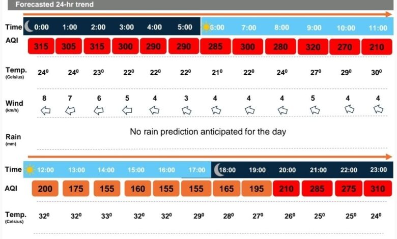 اسموگ نگرانی و پیشگی نظام کے مطابق اگلے چوبیس گھنٹوں میں اوسط اے کیو آئی 220 سے 240 کے درمیان رہنے کا امکان ہے۔