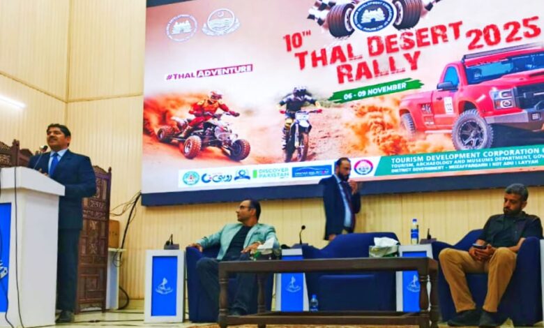 سیکرٹری ٹورزم، آثارِ قدیمہ و میوزیم پنجاب ڈاکٹر احسان بھٹہ نے کہا ہے کہ تھل ڈیزرٹ ریلی 6 سے 9 نومبر تک لیہ، کوٹ ادو، مظفرگڑھ کے وسیع ریگستانی خطے میں منعقد ہو گی، جس سے علاقے میں موٹر سپورٹس، ثقافتی رنگا رنگ اور وراثتی سیاحت کے مرکز میں بہترین تبدیل لائے گی۔ وہ گزشتہ روز لاہور میوزیم میں میڈیا بریفنگ سے خطاب کر رہے تھے۔ انہوں نے بتایا کہ یہ میگا ایونٹ وزیراعلیٰ پنجاب مریم نواز کی “میگنیفیسنٹ پنجاب” وژن کے تحت اور سینئر صوبائی وزیر مریم اورنگزیب کی خصوصی سرپرستی میں منعقد کیا جا رہا ہے، جس کا مقصد جنوبی پنجاب کی تہذیبی عظمت اور ثقافتی شناخت کو اجاگر کرنا ہے۔